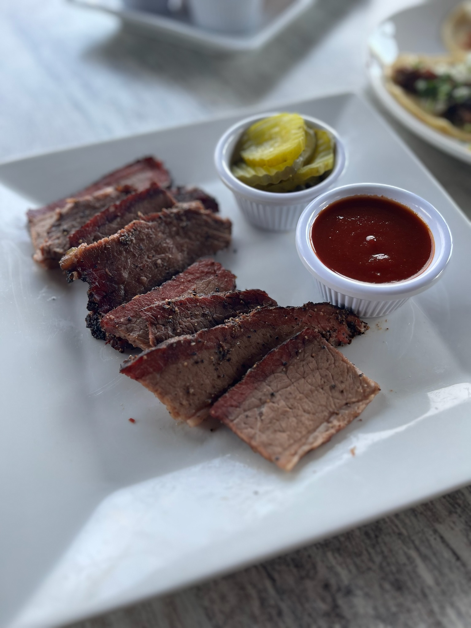 Brisket 1/2 – 2 pounds at your table or to go! Choice of “the point” (fattier) or “the flat” (leaner) or combo