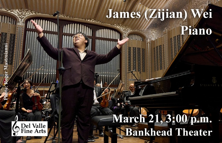 Del Valle Fine Arts 46th season presents the current First Prize winner of the prestigious Cleveland International Piano Competition, pianist James (Zijian) Wei, Saturday March 21 at 3:00 pm in the Bankhead Theater, 2400 First Street, Livermore.